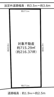 | 接道状況 | 北3.5m 接面17.1m 南1.9m 公道 接面17.1m | 地目 | 宅地 |